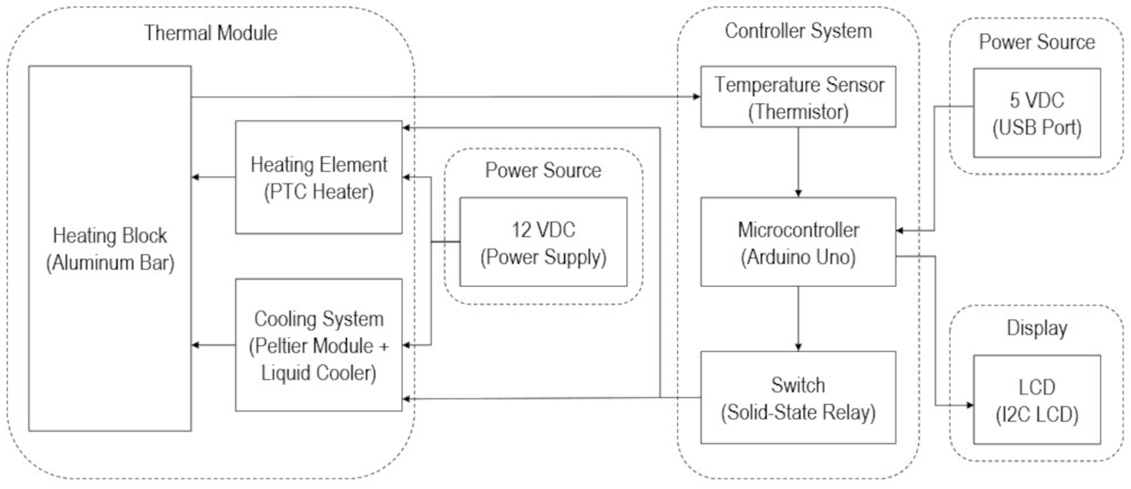 - Luo, K.; Cheng, W.; Chen, Y.; Zhang, Q.; Liang, C.; Li, J.; Wang, W. A portable low-cost polymerase chain reaction device. HardwareX 2025, 21, e00635. [Google Scholar] [CrossRef] [PubMed]