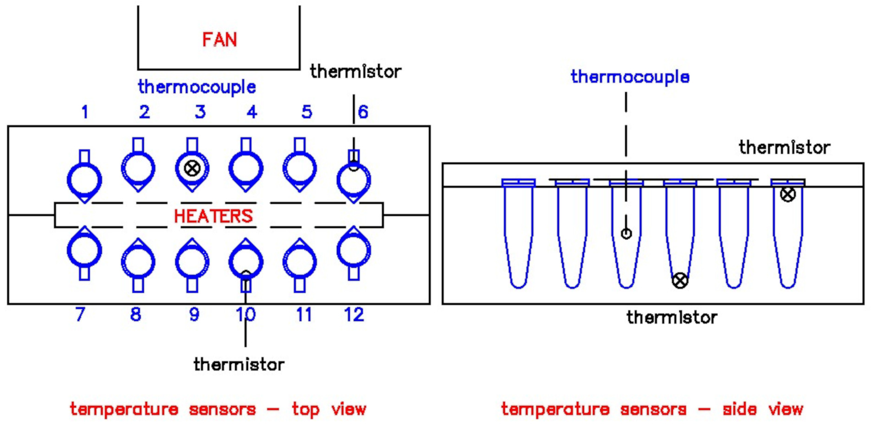 - Nasser, G.A.; Abdel-Mawgood, A.L.; Abouelsoud, A.A.; Mohamed, H.; Umezu, S.; El-Bab, A.M.F. New cost effective design of PCR heating cycler system using Peltier plate without the conventional heating block. J. Mech. Sci. Technol. 2021, 35, 3259–3268. [Google Scholar] [CrossRef]