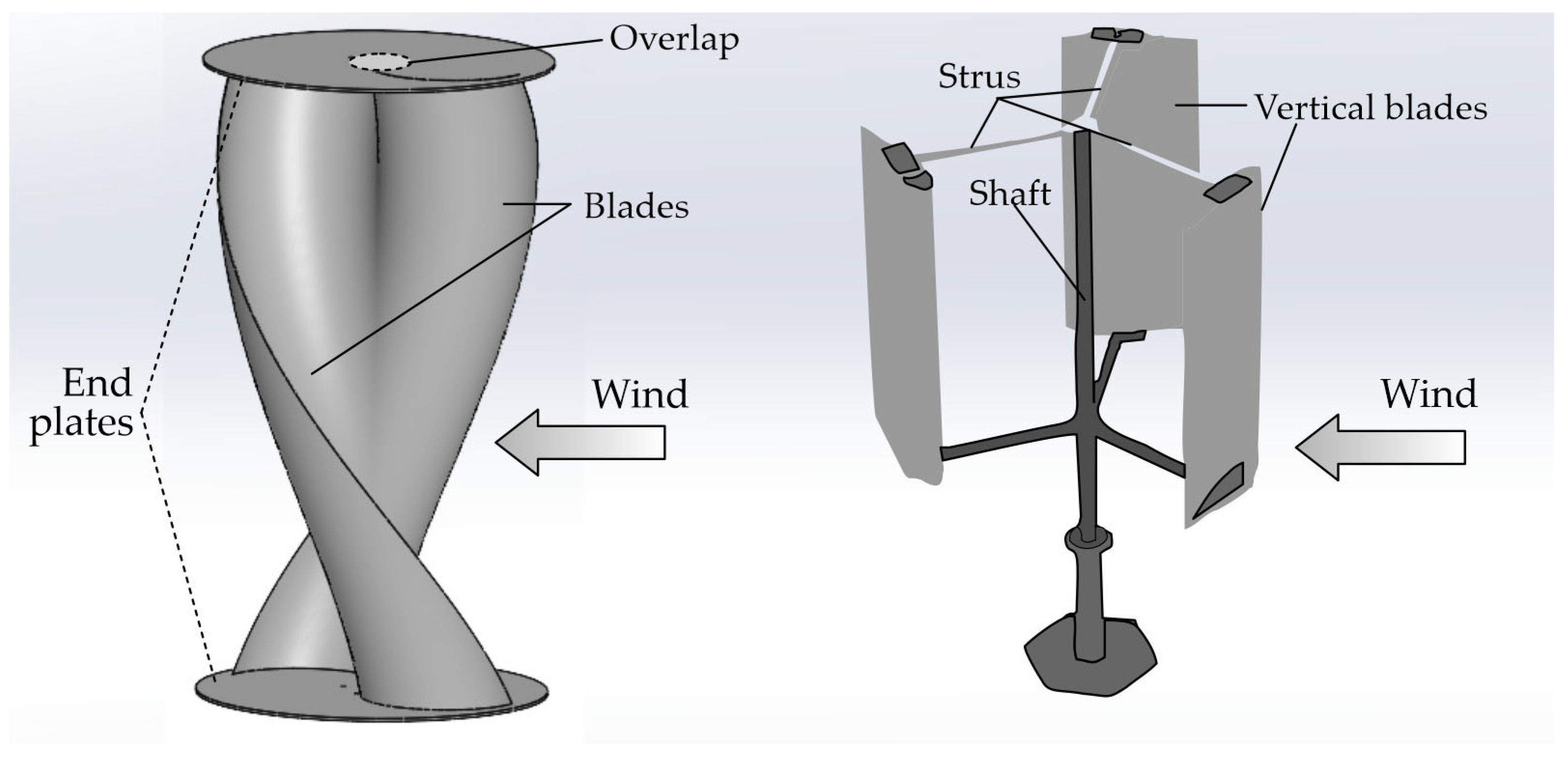 52]. However, despite their obvious benefits, low aerodynamic efficiency and design limitations remain key issues limiting the widespread adoption of these technologies. Studies on improving the aerodynamics of Savonius and Darrieus rotors show that further optimization of blade designs can significantly increase the power coefficient of these turbines [