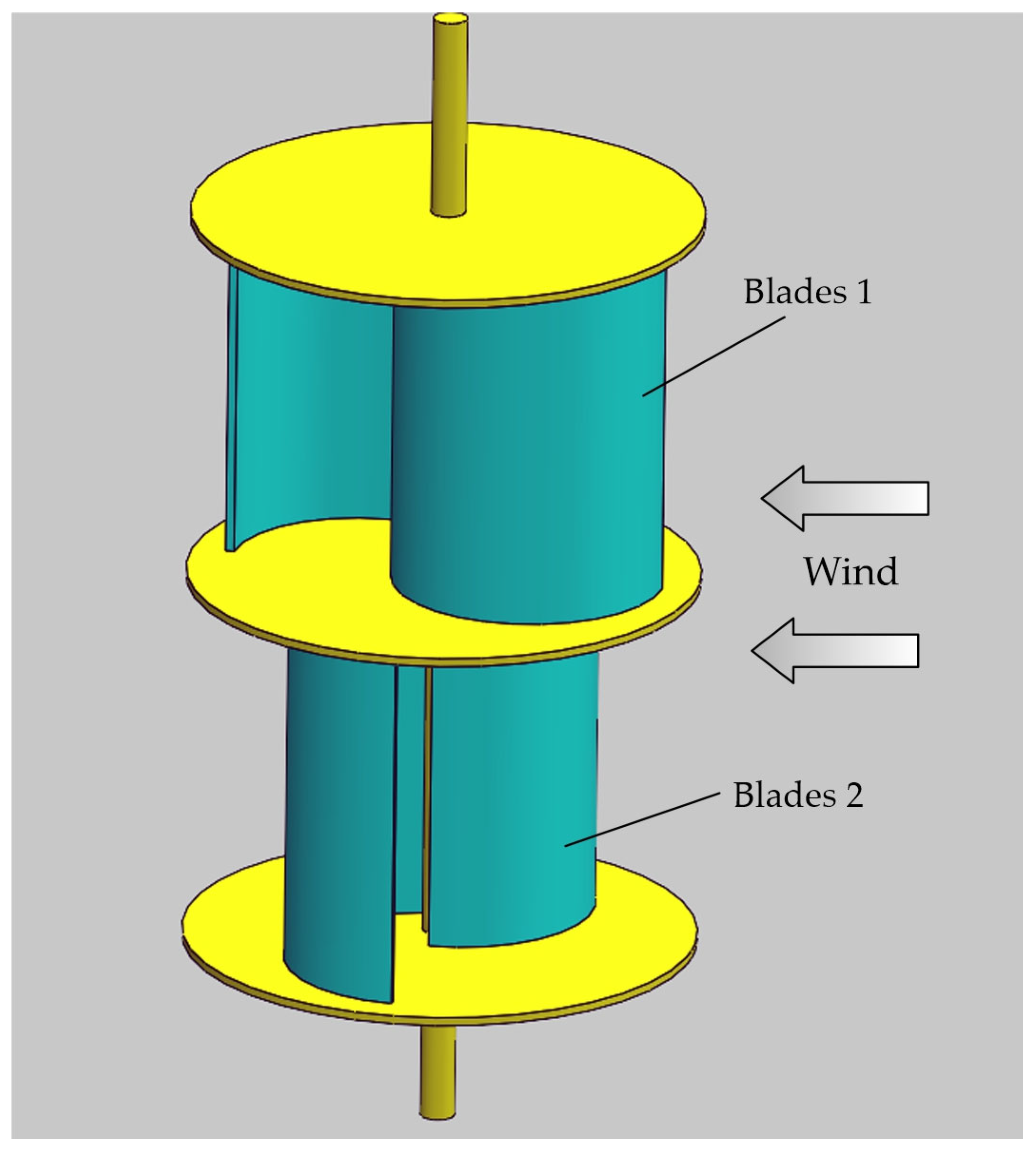 Additionally, other studies indicate the possibility of improving the aerodynamics of Savonius rotors through the use of asymmetric blade profiles, which reduce drag on the reverse side of rotation and, consequently, increase overall turbine efficiency [