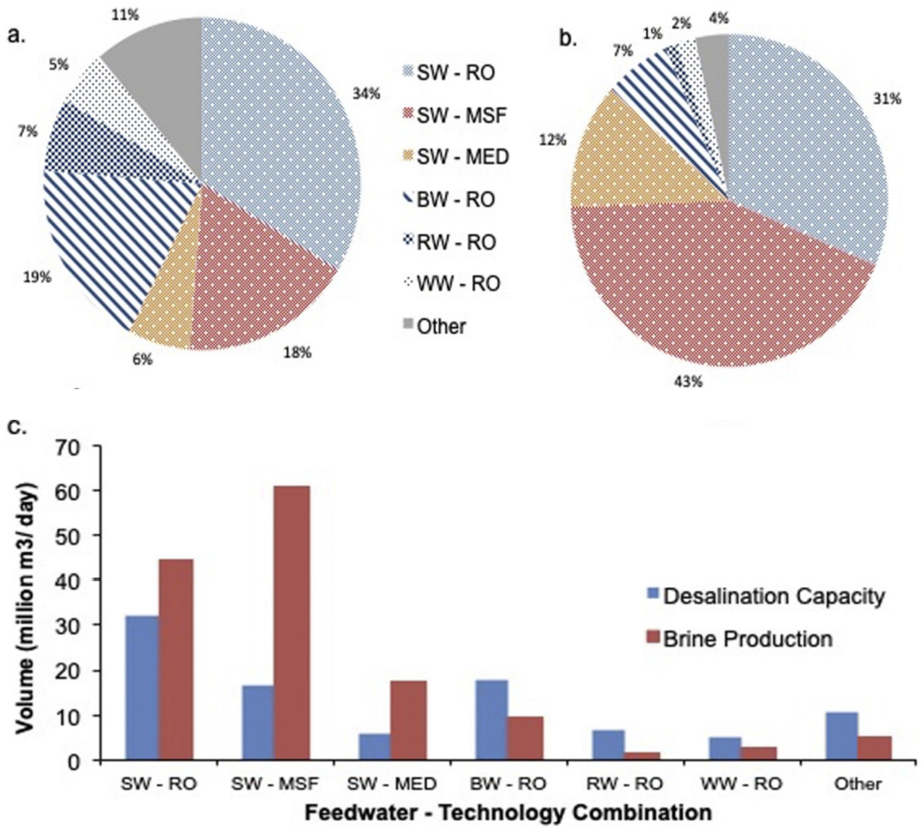 - Jones, E.; Qadir, M.; Van Vliet, M.T.; Smakhtin, V.; Kang, S.M. The state of desalination and brine production: A global outlook. Sci. Total Environ. 2019, 657, 1343–1356. [Google Scholar] [CrossRef] [PubMed]