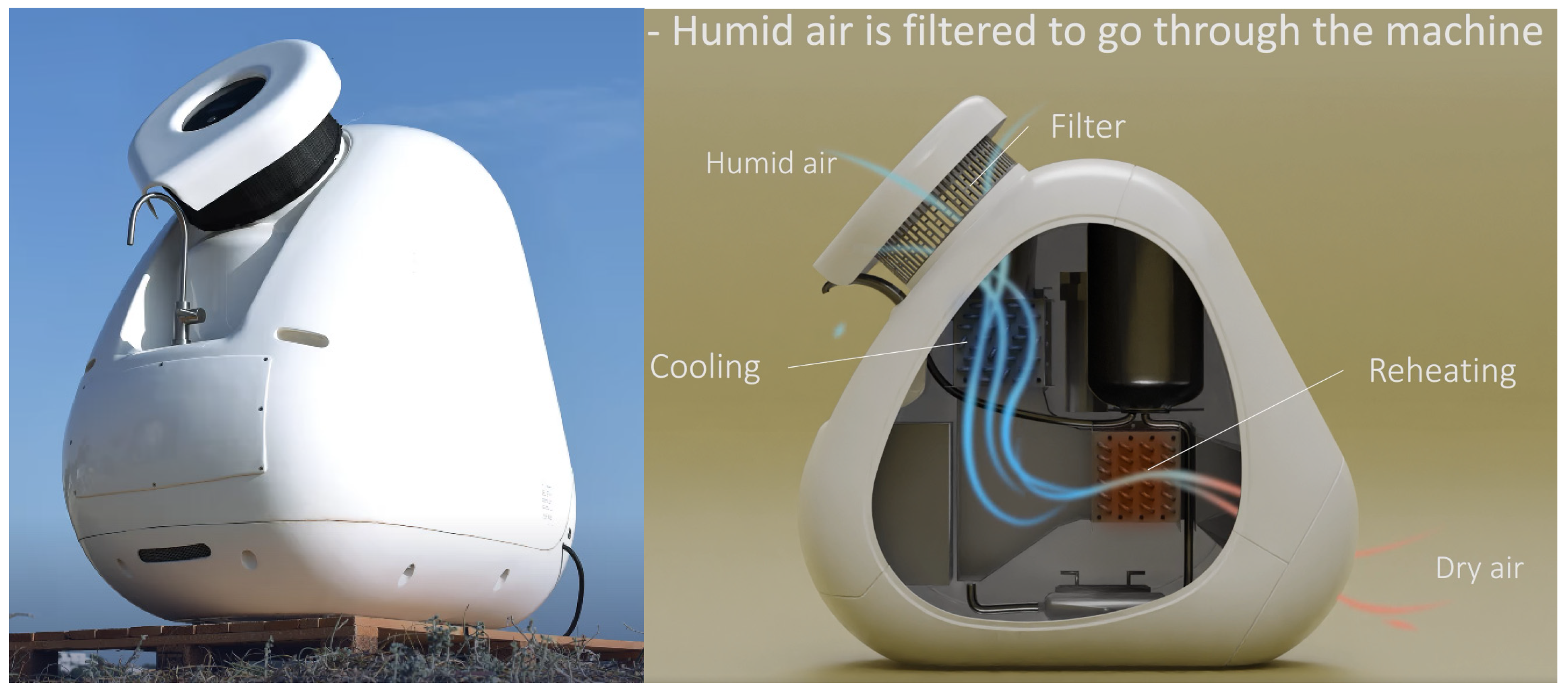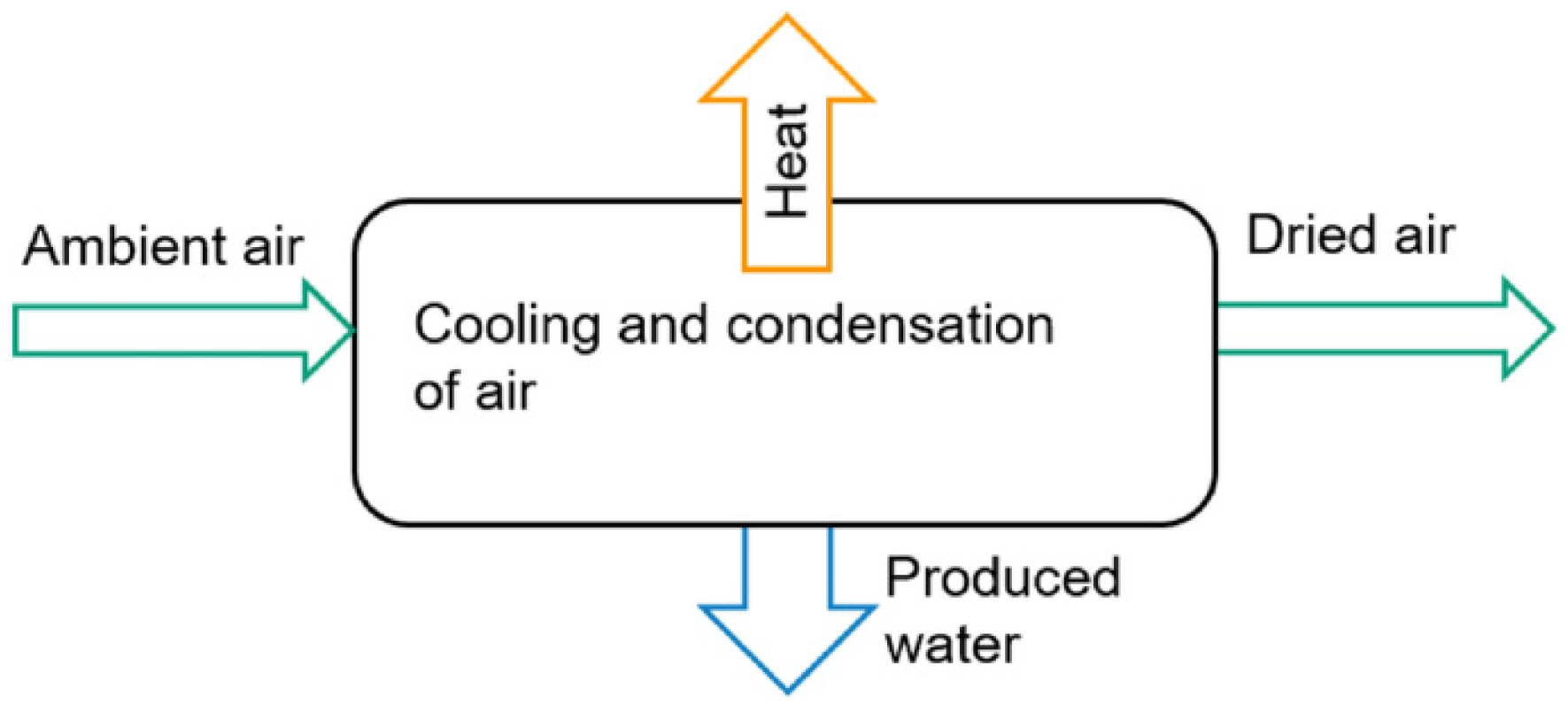 - Peeters, R.; Vanderschaeghe, H.; Rongé, J.; Martens, J. Energy performance and climate dependency of technologies for fresh water production from atmospheric water vapour. Environ. Sci. Water Res. Technol. 2020, 6, 2016–2034. [Google Scholar] [CrossRef]