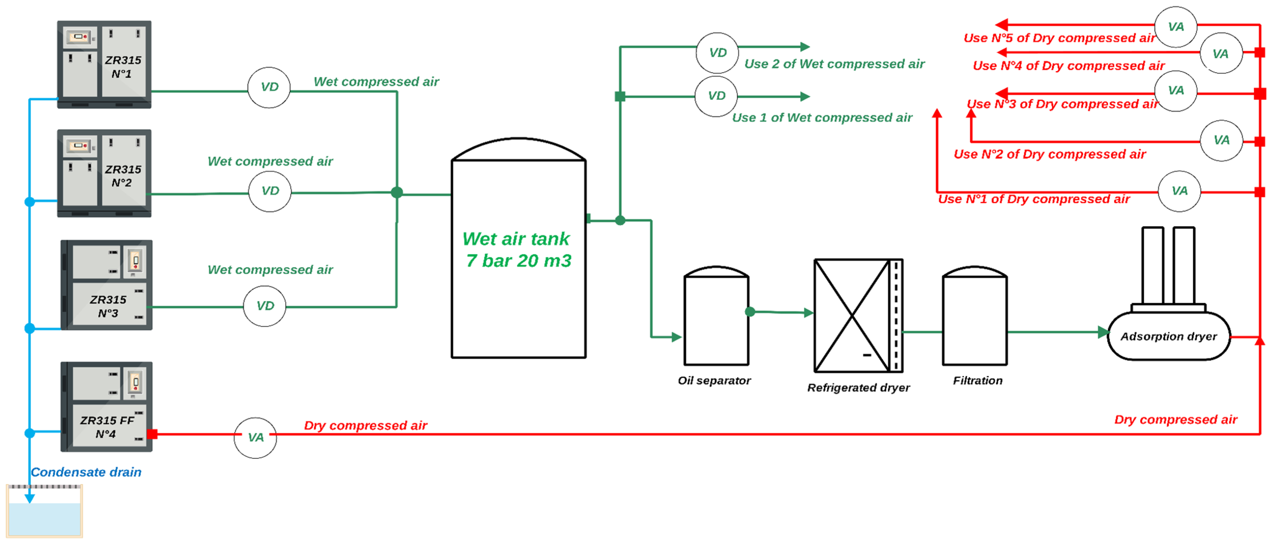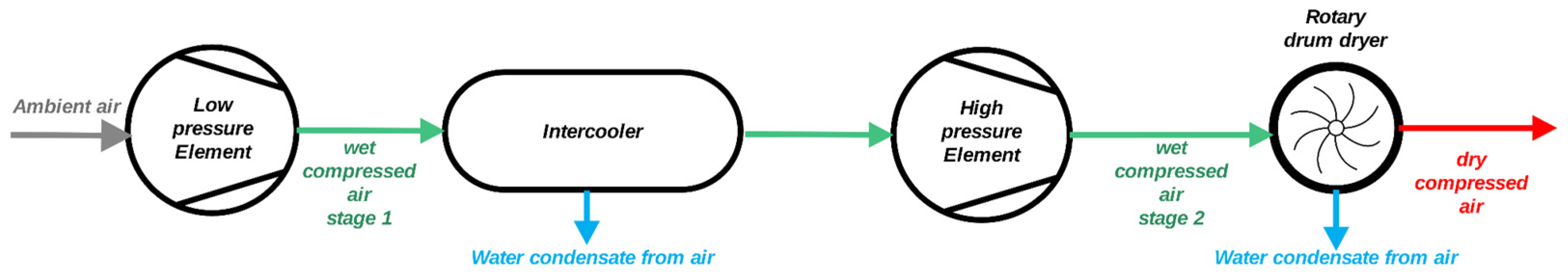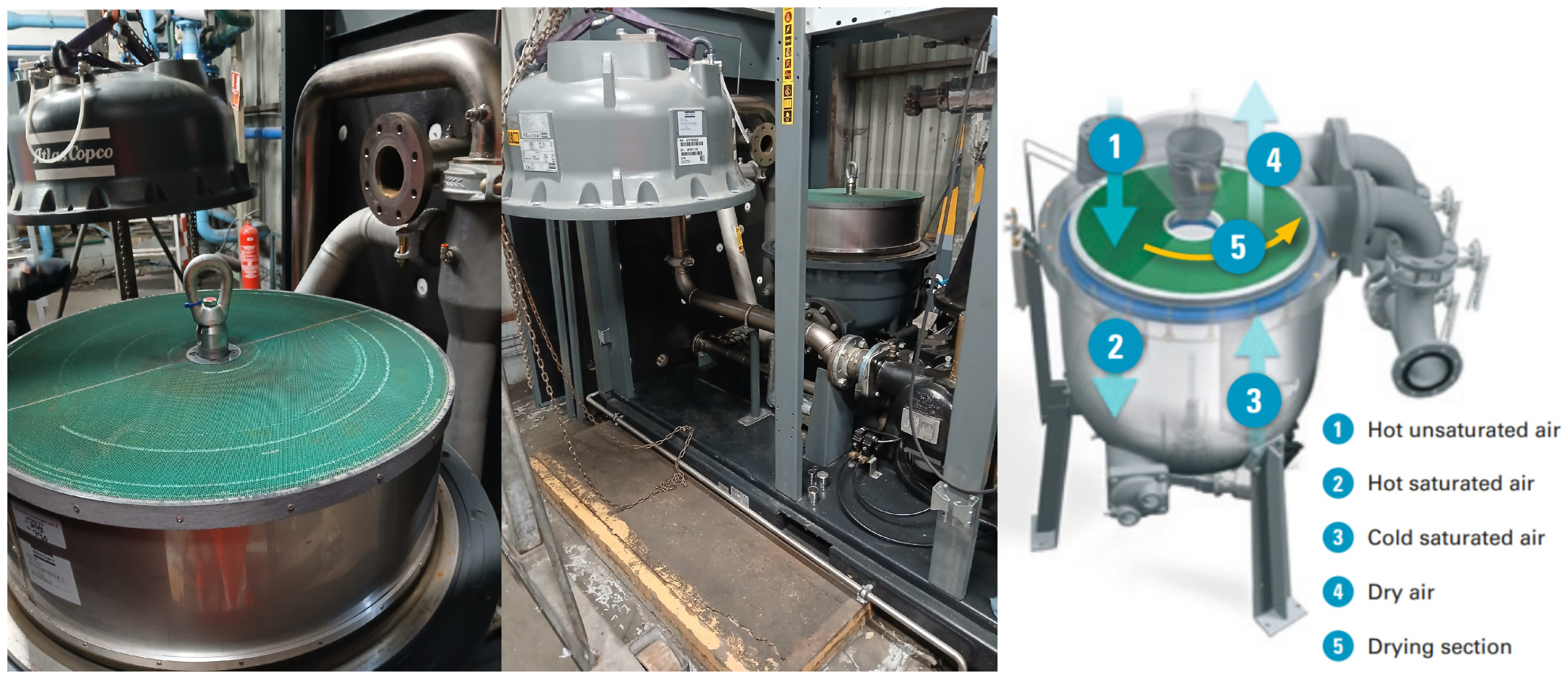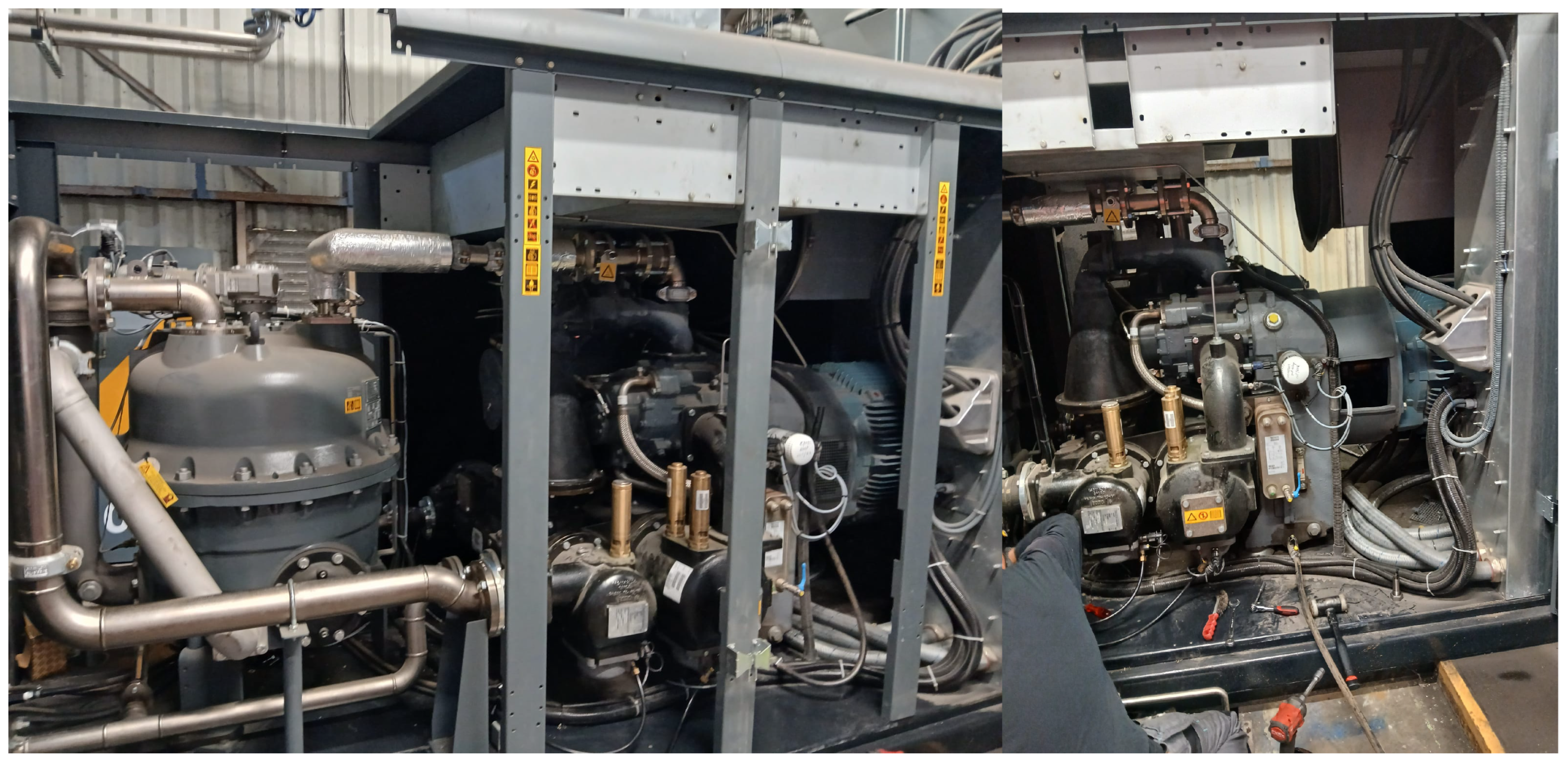2.2. Water Generation from Condensate Recycling in Oil-Free Rotary Screw Air Compressors Atlas Copco ZR315 FF with Integrated Dryer