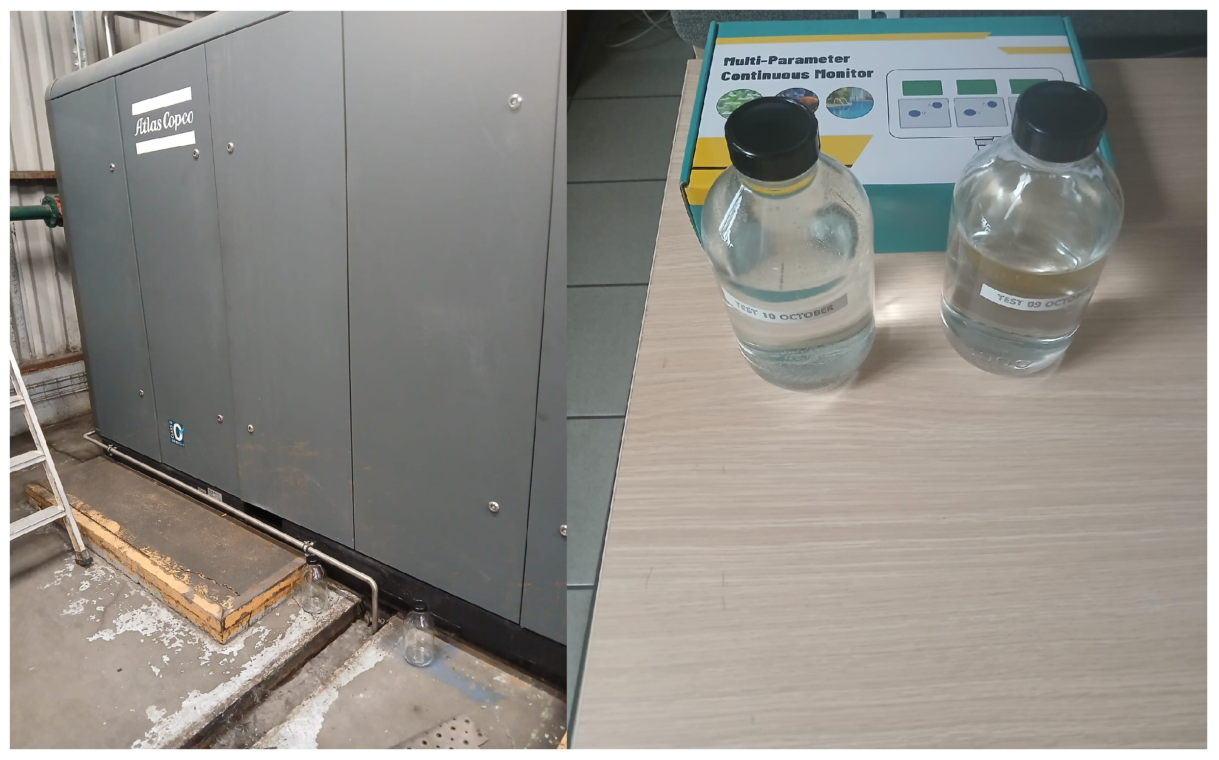 - Atlas Copco’s Technical Service in France Replied to Provide the Manufacturer-Reported Condensate Production Quantity for the Atlas Copco ZR315 VSD FF air Compressor (Unit N°4). Atlas Copco France Confirmation.pdfWater Condensate AtlasCopco.xlsx. Available online: https://drive.google.com/file/d/1TRmQIvc0nm3gBjdYBaEdMuMSToGnmFC6/view (accessed on 20 November 2025).
