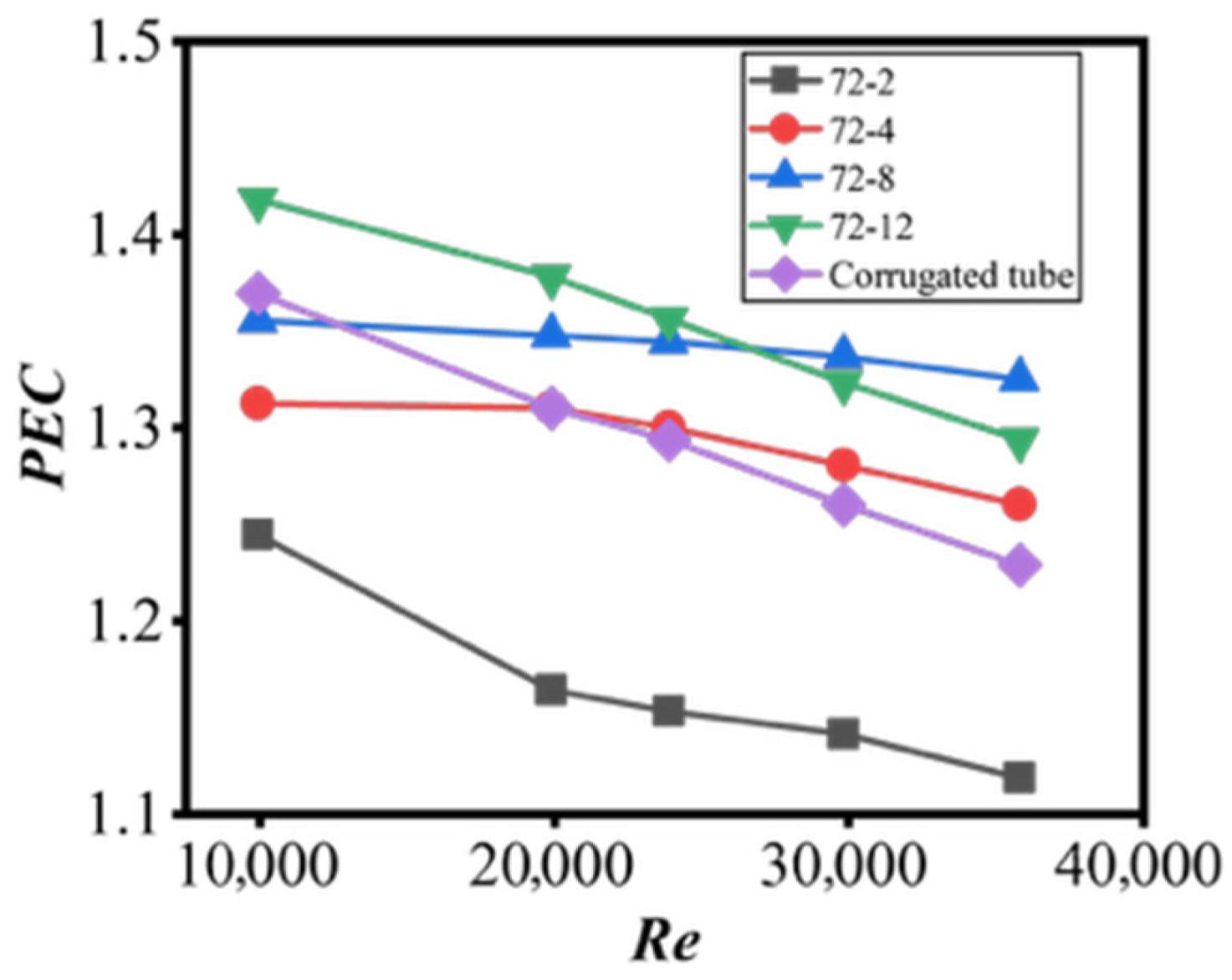 - Structural parameter effect: Corrugated segment count is a critical tunable parameter: more segments (e.g., 72-12, 72-8 configurations) boost heat transfer performance, fitting applications prioritizing high thermal efficiency; fewer segments (e.g., 72-2 configuration) reduce the friction factor by up to 40.7%, ideal for low-flow-resistance requirements.