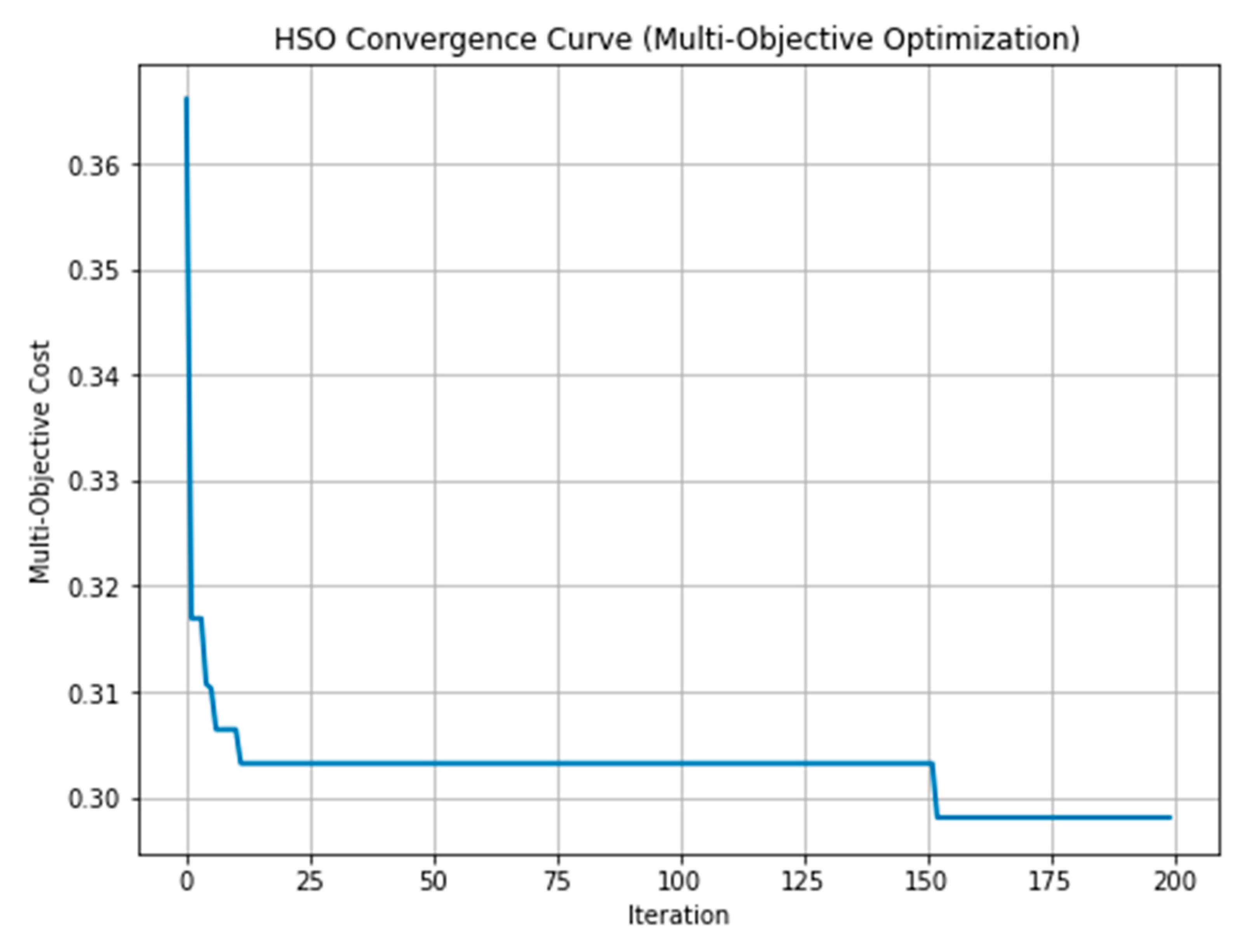 The efficacy of HSO in navigating intricate, plateau-rich hyperparameter search spaces is confirmed by convergence analysis and constant feature importance behavior, which support the robustness and stability of the optimized model.