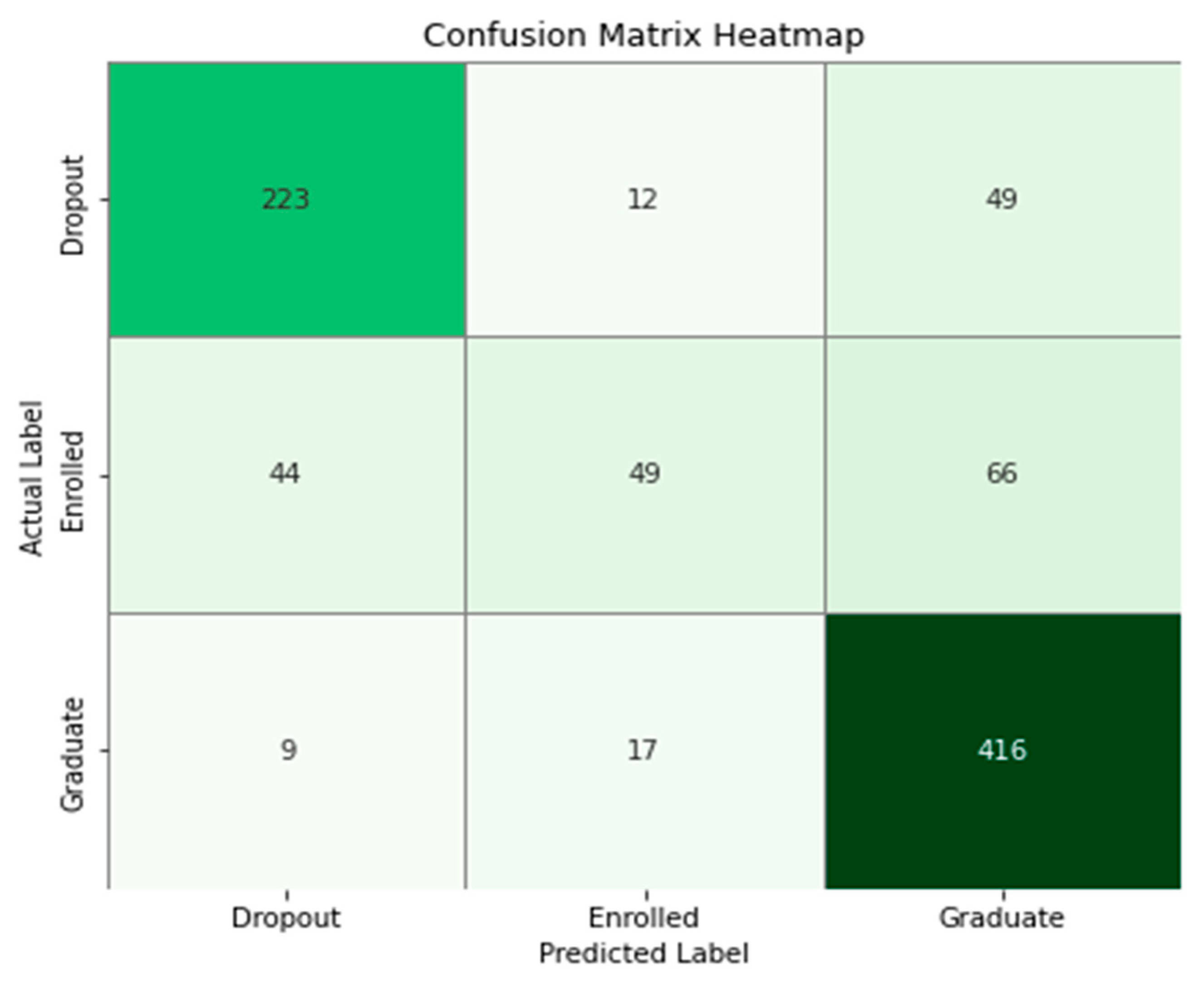 Despite these advantages, there are certain drawbacks that should be discussed. Because just one publicly accessible dataset was used for the trials, generalizability across universities with various student demographics or academic frameworks may be limited. Furthermore, entropy-based uncertainty does not completely differentiate between aleatoric and epistemic uncertainty, even though it offers useful confidence estimates. Future research prospects include cross-institutional validation, longitudinal analysis, and the incorporation of more sophisticated uncertainty decomposition approaches to address these limitations.