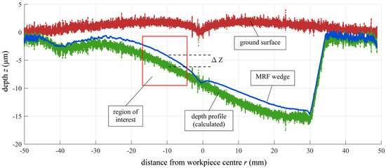 Due to the form deviation, differences between the polished wedge surface and the actual depth profile of up to 2 μm (Figure 5) occur in the individual experiments. This is particularly relevant for fine grinding processes with low SSD. Within the experiments, the differences correspond to 30–40% of the measured maximum crack depth.