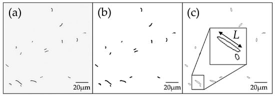 SSD-Image Processing (ImageJ): (a) raw microscopy data; (b) binary conversion; (c) determination of crack length L by best fit ellipse.