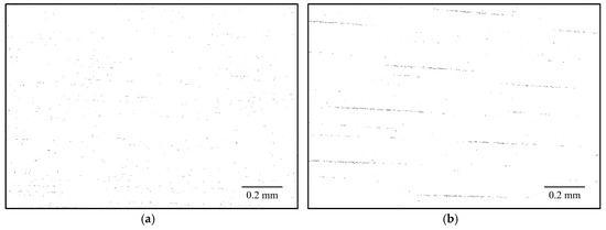 Micrograph of the MRF wedge surface after etching: (a) sample with low SSD (vc = 54 m/s; cmax = 4.6 µm); (b) sample with larger SSD (vc = 30 m/s; cmax = 6.8 µm).
