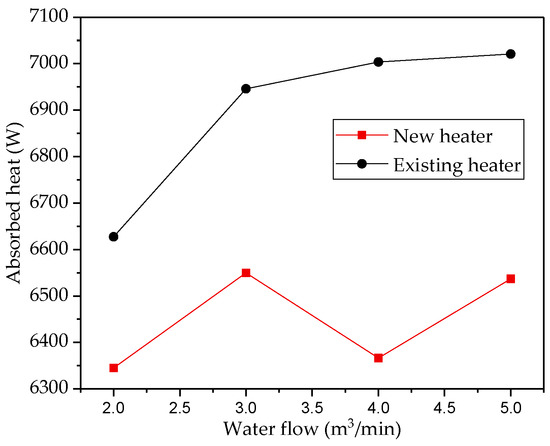 Different from the existing heat exchanger, the water flow has a significant effect on the efficiency of the new heat exchanger. It is found that the heat absorbed by water in the new heat exchanger is higher than the existing one and it increases from 6630 W to 7000 W with increase of the water flow, while the heat of the existing one fluctuates between 6340 W and 6550 W. The thermal efficiency of the new heat exchanger is 94%, while the existing one is 88% through converting. The heat that is absorbed by water in the new heat exchanger keeps increasing, but increases more and more slowly while water flow increases. Seemingly, there is a highest value of heat absorption foe the new heat exchanger and it depends on the water flow.