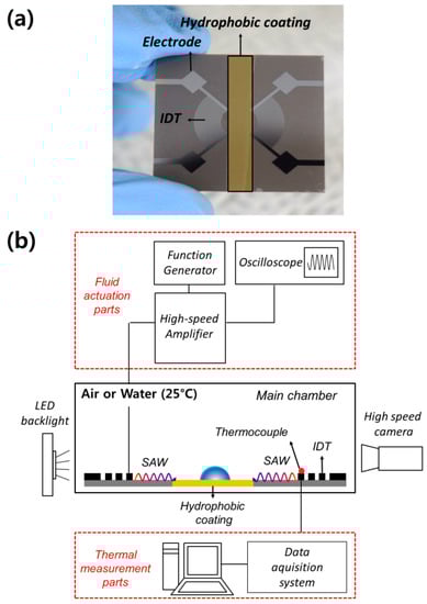 - Shilton, R.J.; Mattoli, V.; Travagliati, M.; Agostini, M.; Desii, A.; Beltram, F.; Cecchini, M. Rapid and controllable digital microfluidic heating by surface acoustic waves. Adv. Funct. Mater. 2015, 25, 5895–5901. [Google Scholar] [CrossRef]