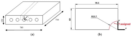 The physical model of the TES system is a parallelepiped with the dimension of 785 × 120 × 710 mm filled with nano-PCM and a number of pipes where the heat transfer fluid (HTF), flows, passing throughout it. For the thermal and geometry symmetry the computational domain is only a part of the system and it is shown in Figure 1. During the charging operation, on the pipe surface a temperature value of 343.15 K is applied to take into account the heat exchange between the HTF and the TES system. The other surfaces are assumed adiabatic. Along the y-axis a gravitational acceleration is imposed and the Boussinesq approximation is considered to take into account the natural convection. The enthalpy-porosity method is employed [18], because the paraffin melts in a temperature range. In this method a non-dimensional parameter is introduced, called liquid fraction, indicated with Greek letter β, that describes the mixed zone during the phase change.