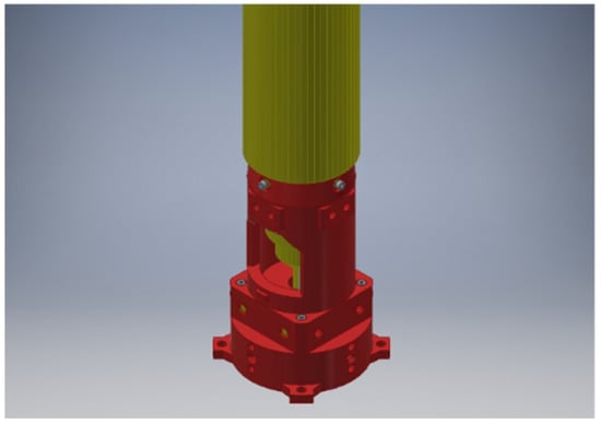 Figure 6. Rendering of assembled middle section of the open-source 3-D printable pelletizer chopper.