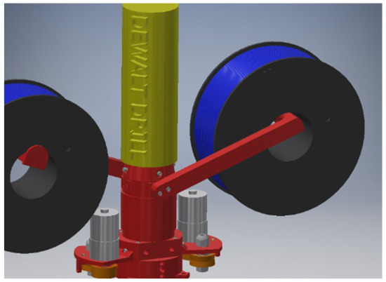 Figure 9. Rendering of the details of the spool arms of the open-source 3-D printable pelletizer chopper.