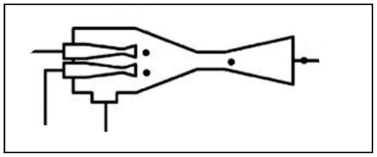 A further geometry concept of the two-phase ejector was introduced by Zhou et al. [43] as the dual ejector, shown in Figure 3. It is equipped with two nozzles and will be further discussed in a later Section 5.2.1.
