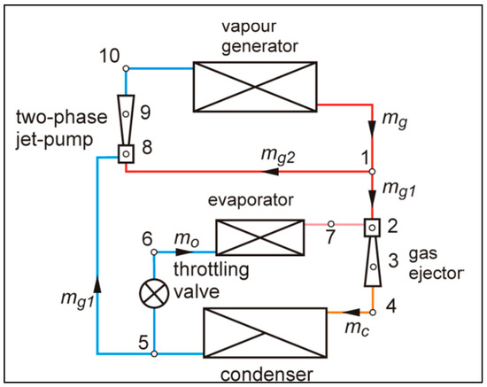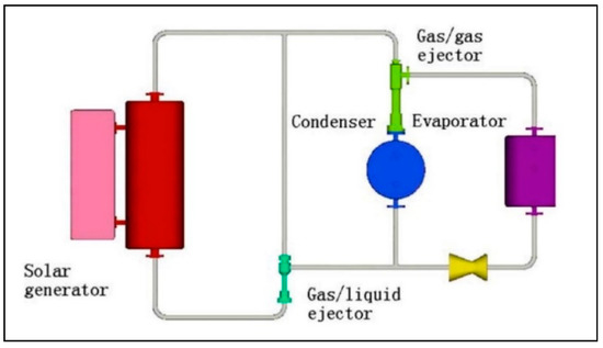- Shen, S.; Qu, X.; Zhang, B.; Riffat, S.; Gillott, M. Study of a gas-liquid ejector and its application to a solar-powered bi-ejector refrigeration system. Appl. Therm. Eng. 2005, 25, 2891–2902. [Google Scholar] [CrossRef]