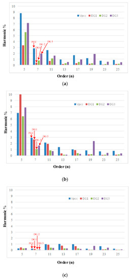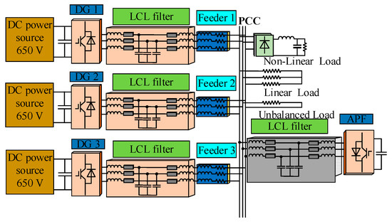 - We improve the PCC voltage quality and successfully eliminate the harmonic distortion levels produced at the output terminals of the DGs due to the whack-a-mole effect in an islanded microgrid with the compensation of APF.