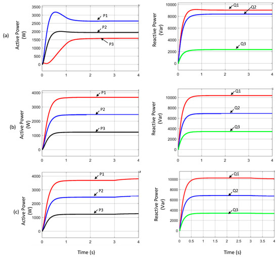 | Real power and reactive power droop coefficients | dp1 = 0.0001/3 rad/s/W, dq1 = 0.0001/3 V/Var; dp2 = 0.0001/2 rad/s/W, dq2 = 0.0001/2 V/Var; dp3 = 0.0001 rad/s/W, dq3 = 0.0001 V/Var |