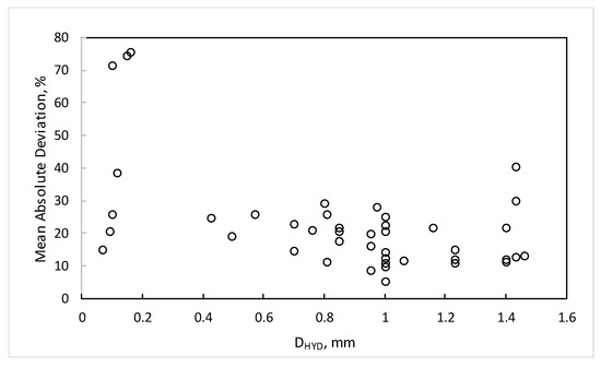 Table 2 gives the results of comparison of data for non-circular channels except flattened tubes with various correlations. It is seen that the best agreement is with the Shah [3] correlation. The only data set which gives very large MAD is that of Garimella et al. [41] in rectangular channels. These data are very high compared to all correlations. Figure 1 shows the MAD of Shah correlation for all data sets vs channel hydraulic diameter. Three data points have MAD about 70%, much larger than all other data. These are from Garimella et al. [41]. It is seen that many other data points in the same diameter range and even smaller diameters are in satisfactory agreement. Results over the extreme limits of data do not show any increase in deviation.