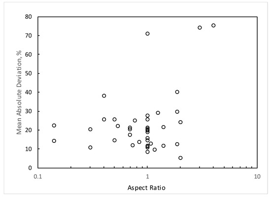 Figure 2 shows the MAD of the Shah correlation with all data sets as a function of aspect ratio of channel. Again, three data points have MAD about 70%, much larger than all other data and these are from Garimella et al. [41]. The figure does not indicate any relation between aspect ratio and deviations.