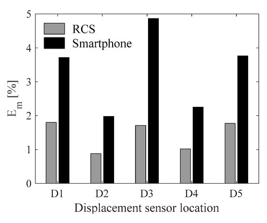 - The low-cost RCS provides very accurate vertical displacements. The overall measurement error of the RCS is 1.4%, which is more than two times smaller than that of the smartphone. In this study, 1.4% corresponds to 0.03 mm.