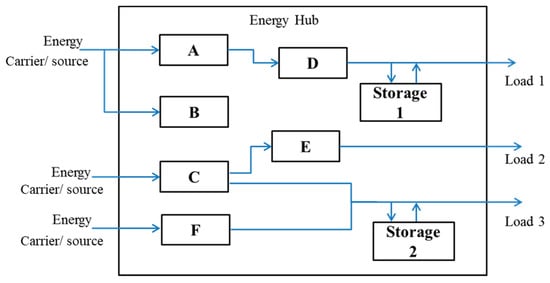 Geidl et al. developed a model for multiple energy carrier systems and expressed the energy hub model in terms of energy conversion technologies; then, they incorporated energy storage systems [6]. They emphasized that their formulation of the energy hub leaves significant room for optimization since the efficiency of the technologies is nonlinear.