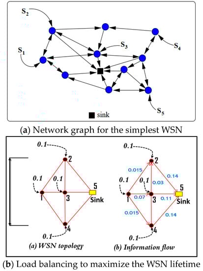 Overview of the WSN modeling as a graph and load balancing to maximize WSN’s lifetime.