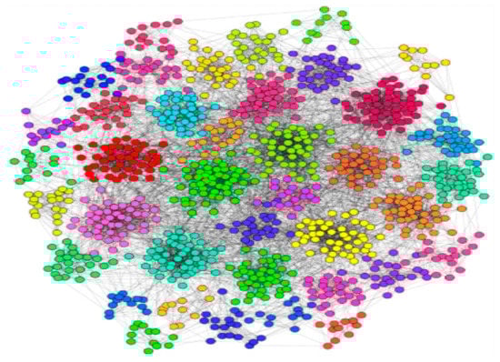 - Newman, M.E.J. Modularity and community structure in networks. Proc. Natl. Acad. Sci. USA 2006, 103, 8577–8582. [Google Scholar] [CrossRef]