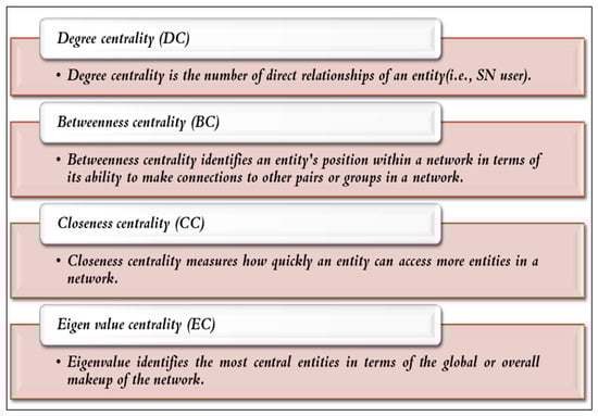 - Dekker, A. Centrality in social networks: Theoretical and simulation approaches. In Proceedings of the SimTect, Melbourne, Australia, 12–15 May 2008; pp. 33–38. [Google Scholar]