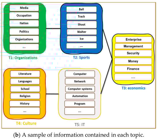 - Chen, Z.; Liu, B. Mining Topics in Documents: Standing on the Shoulders of Big Data. In Proceedings of the 20th ACM SIGKDD International Conference on Knowledge discovery and Data Mining, New York, NY, USA, 24–27 August 2014; pp. 1116–1125. [Google Scholar]