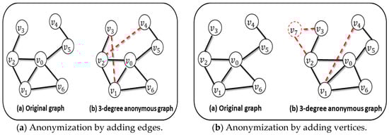 - Casas-Roma, J. An evaluation of vertex and edge modification techniques for privacy-preserving on graphs. J. Ambient. Intell. Humaniz. Comput. 2019, 11, 1–17. [Google Scholar] [CrossRef]