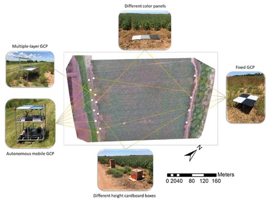 - Gómez-Candón, D.; López-Granados, F.; Caballero-Novella, J.J.; Gómez-Casero, M.; Jurado-Expósito, M.; García-Torres, L. Geo-referencing remote images for precision agriculture using artificial terrestrial targets. Precis. Agric. 2011, 12, 876–891. [Google Scholar] [CrossRef]