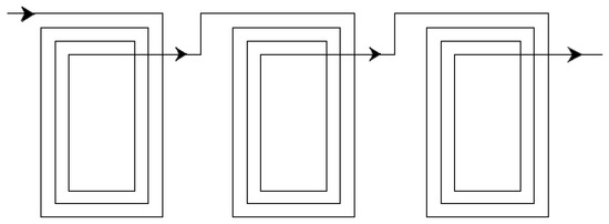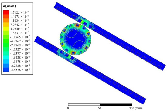 Using the parametric FEA simulation, the flux distribution of the stator winding can be evaluated. The stator winding comprises two coils on both the top and bottom plates. Figure 14 shows the direction of the current in the bottom coil.