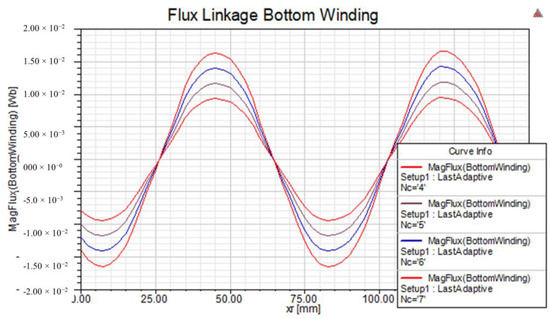 As part of the simulation study, a sensitivity analysis is also carried out to tune the design parameters. Figure 16 shows the flux linkage versus the linear position of the rotor with respect to the number of coil turns in a stator winding.