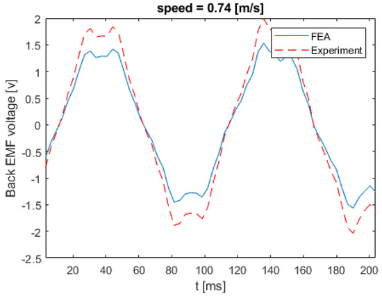 Back EMF voltage for linear speed of 0.74 m/s.