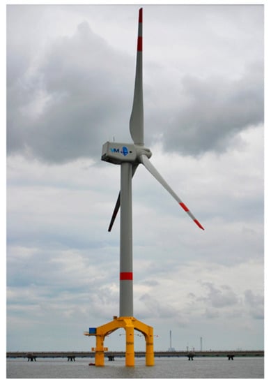 In recent years, due to the installation of offshore windfarms in deeper waters, as well as the increase of wind turbine’s power, other structures like jacket and tripods have been used, i.e., in Alpha Ventus offshore windfarm [17,18,19].