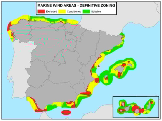 - Ministerio de Industria, Turismo y Comercio—Ministerio de Medio Ambiente y Medio Rural y Marino. Available online: http://www.minetur.gob.es/es-es/gabineteprensa/notasprensa/documents/np%20mapa%20e%C3%B3lico%20marino%2020%2004%2009.pdf (accessed on 10 December 2019).
