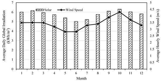 Zimbabwe faces a deficit in its energy production. Around 35% of the energy used in Zimbabwe is imported from the Democratic Republic of Congo (DRC), South Africa and Mozambique [13]. Renewable energy can be an environmentally friendly and sustainable solution to help curb this energy deficit in Zimbabwe. Basic knowledge of the geographical location, economic situation, as well as energy demand, is required to design and develop suitable systems. Zimbabwe lies in a sunny belt, with approximately 4000 h of solar radiation per year and 5.5 kWh/m2/day of solar radiation on average [14,15]. Renewable energy has not been harnessed on a large scale in Zimbabwe. Small-scale solar photovoltaic (PV) panels for lighting and irrigation purposes are the only uses of solar energy in Zimbabwe [13]. Small windmills still exist on some farms, in which they were once used to pump water even though a study by the ZERO Regional Environment Organization concluded that there is a potential of generating power from wind resources in Zimbabwe at a hub height of 80 m [13].