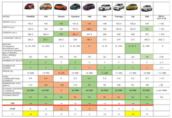 Subsequently, we passed the Top-Flop analysis, calculating the resulting delta (Δ) for each vehicle. The absolute winners of this analysis turned out to be the Panda and the Up model, thanks to its different points in favor. According to the procedure, the values that we want to assign to our product must appear in the innovation column to the right of the graph and, in the end, the result must be greater than the best of the competitors [4]. Δ is innovation index, i.e. TOP-FLOP = Δ. If Δ is high, we have an hi index of innovation that, in the future product, must be overcome.