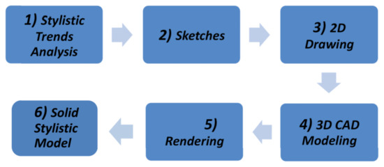 Thanks to Ramacciotti’s work, some companies that offered car styling projects were able to organize the activities in a systematic way, offering even the less experienced designers a road map to find attractive and successful aesthetic solutions. This process (or rather, method) has long been the subject of study and research by L. Frizziero et al. [1,2,3,4,5,6,7,8,9,10,11,12,13,14], at the University of Bologna; in fact, in addition to finding more and more confirmation of its goodness by carrying out numerous car design projects together with students and collaborators, it was realized how much it has become a fertile ground for conquest for new technical-scientific applications, especially using the new technologies 4.0. In this panorama, the present work is born, which will be described below.