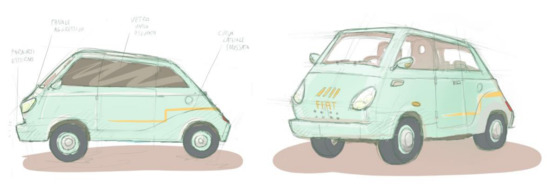 New FIAT 600 Omega—CAD 3D model and details: side and back rendering.