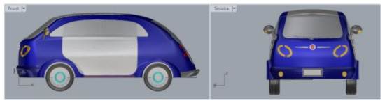 - Frizziero, L. Design Study Oriented to the Aesthetics of the City Bumper, Innovative Quadricycle. Master’s Thesis, Alma Mater Studiorum University of Bologna, Bologna, Italy, 2003. [Google Scholar]