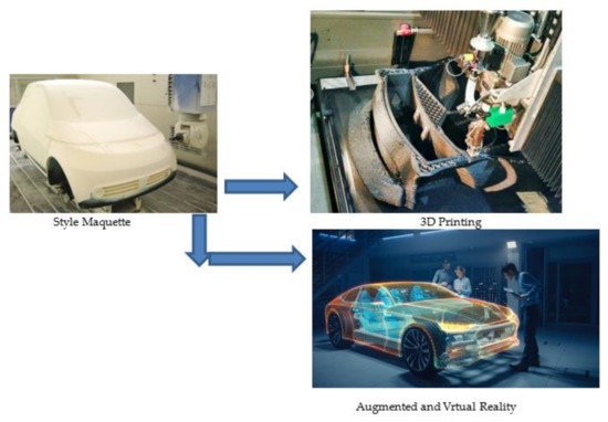 Switch from the solid stylistic model (maquette) created with polyurethane, Ureol, clay and wood to 3D printing, augmented reality and virtual reality (Figure 38).