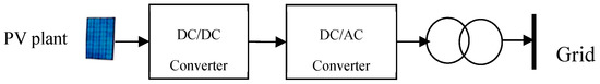 In recent years, photovoltaic systems have been widely used as distributed electric power generators in kW scale and sometimes as farms producing output power in range of MW scale. Despite the fact that the configuration of the photovoltaic farm is different than that of the traditional power plants. PV parks are required to support the grid in terms of active and reactive powers targeting stable and reliable system. Figure 4 shows the main components of a grid tied photovoltaic power plant. Active and reactive power control systems mainly depend on the change of the control signal of the two converters of the system.