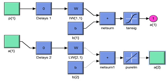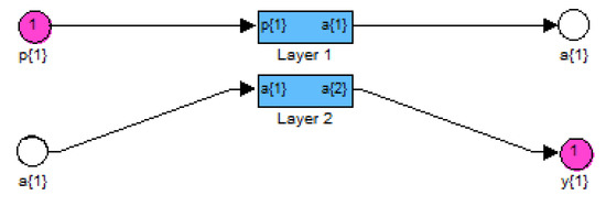 The PFFNN is prepared with an overseen/monitored preparing procedure of artificial neural networks [25]. In this article, PFFNN is created as a unique sort of trained and ingenious controller. The input and target data for preparing the PNN are acquired from the input and output of the ordinary controller [25]. The layers, weights and biases of the simulated PFFNN network are shown in Figure 2 and Figure 3 respectively.