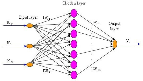 In this investigation, an MLP arrangement is made which gives a competent performance. The approach depends on the supervised learning of a neural system, so information for the preparing must be approximated. For this reason, three contributions are recorded at the PID approaching sign and one output flag active from PID. The three inputs of the PID controller are connected as an input to the information layer of the MLP neural system. Active and reactive power are the two required outputs for the proposed network. The layers of simulated MLPFFNN are shown in Figure 4.