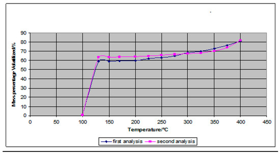 Figure 2 assisted in determining the percentage of various petroleum products of which the oil samples are comprised. Boiling ranges and volatility of the oil compound gives an indication as to which petroleum fractions are present in the sample. From the results obtained, it was deduced that the oil sample comprised of constituents that burned from the gasoline range to the 400 °C+ residue.