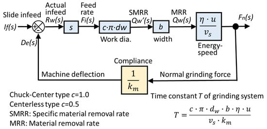 Thus, infeed cylindrical grinding can be represented by the first-order lag system with the time constant T given by Equation (16).
