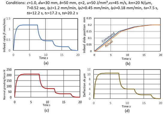 where t is the grinding time and is the grinding machine deflection in the infeed direction given by Equation (14). The actual infeed rate is: